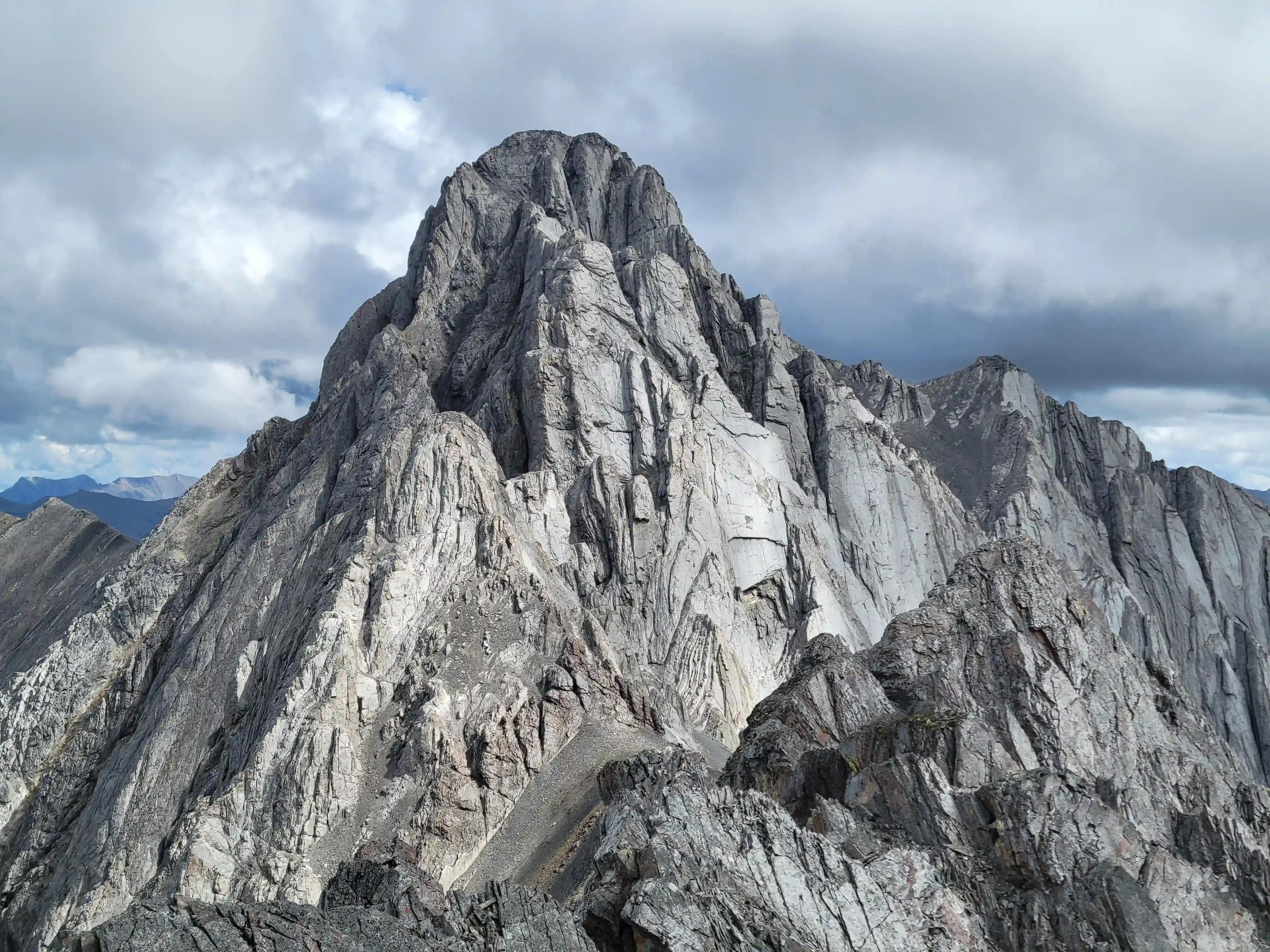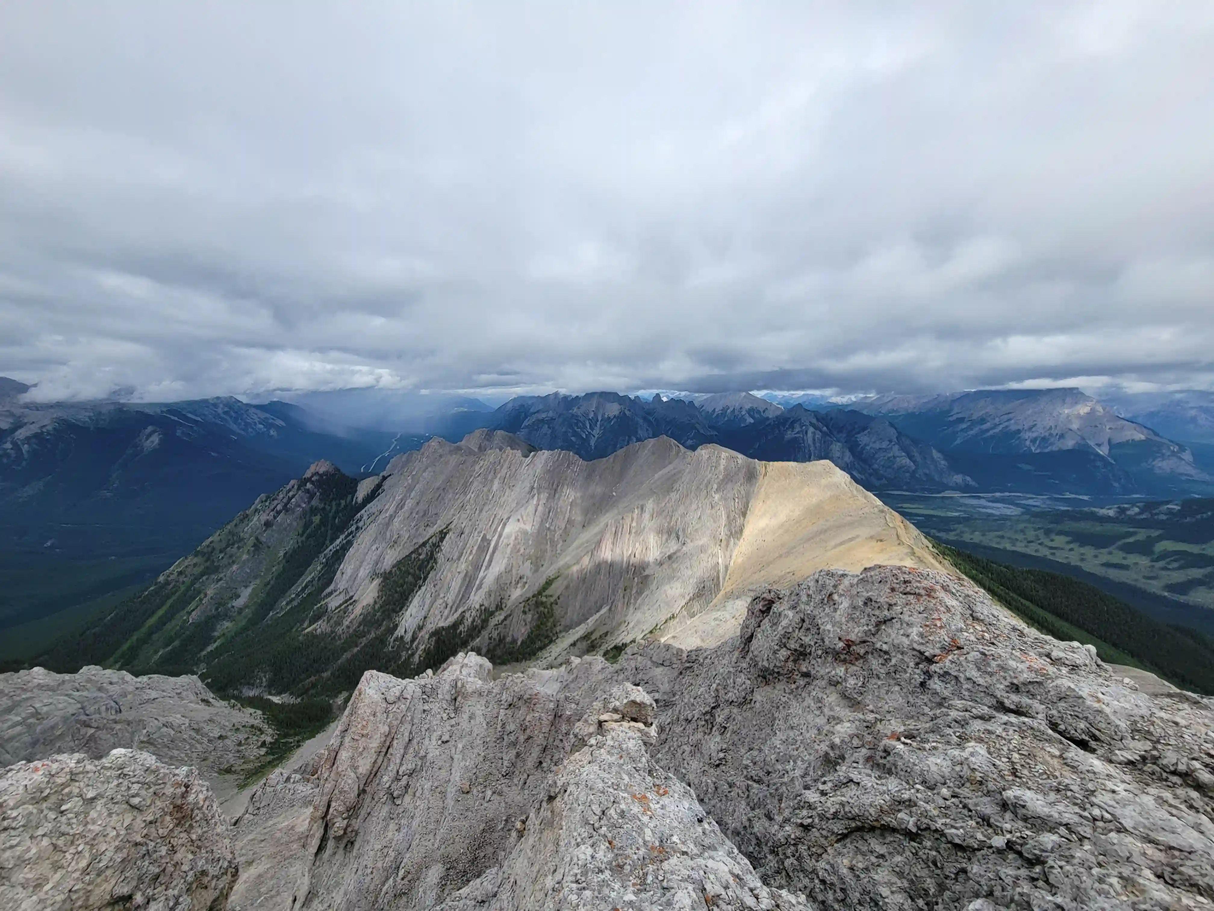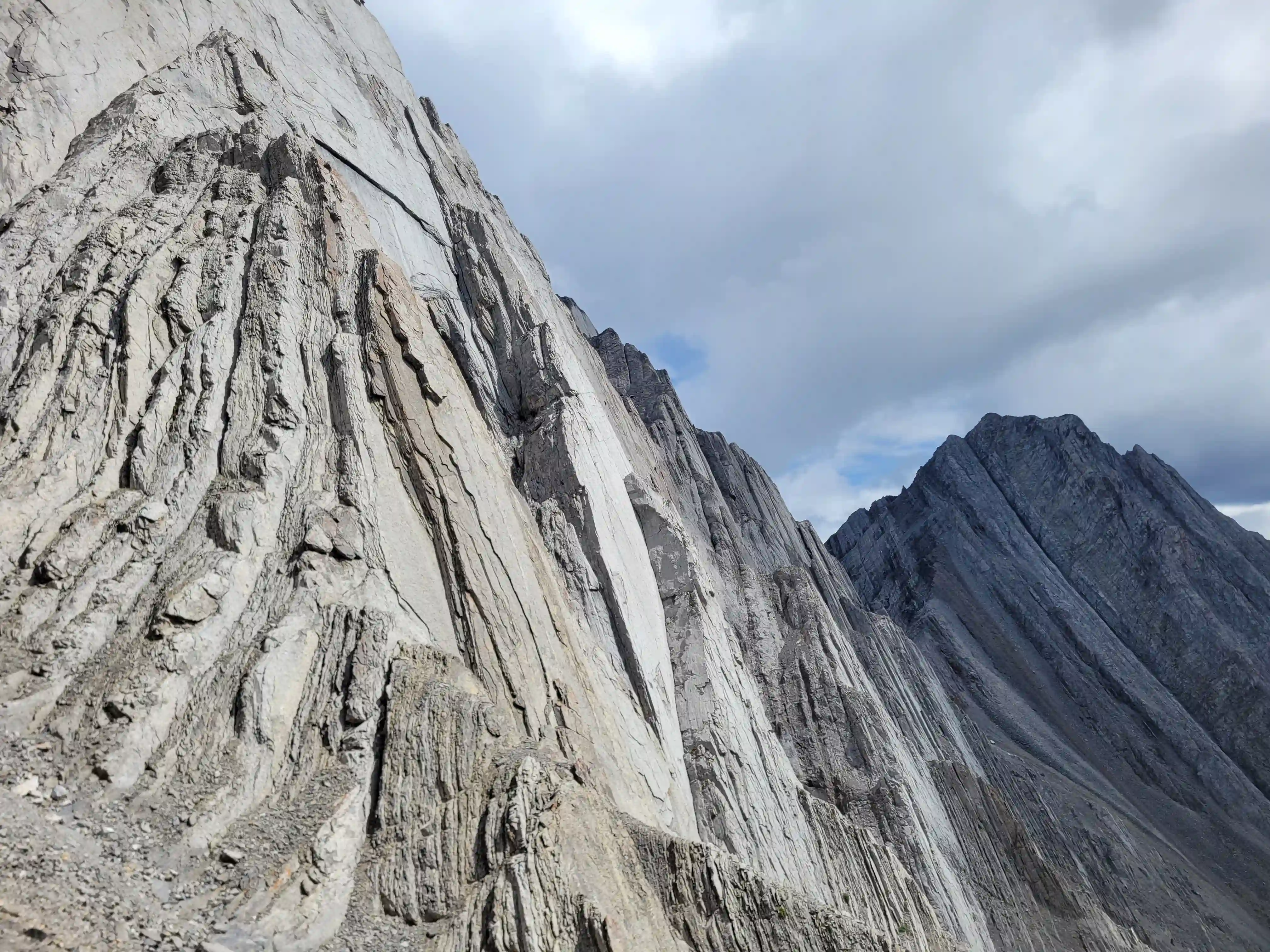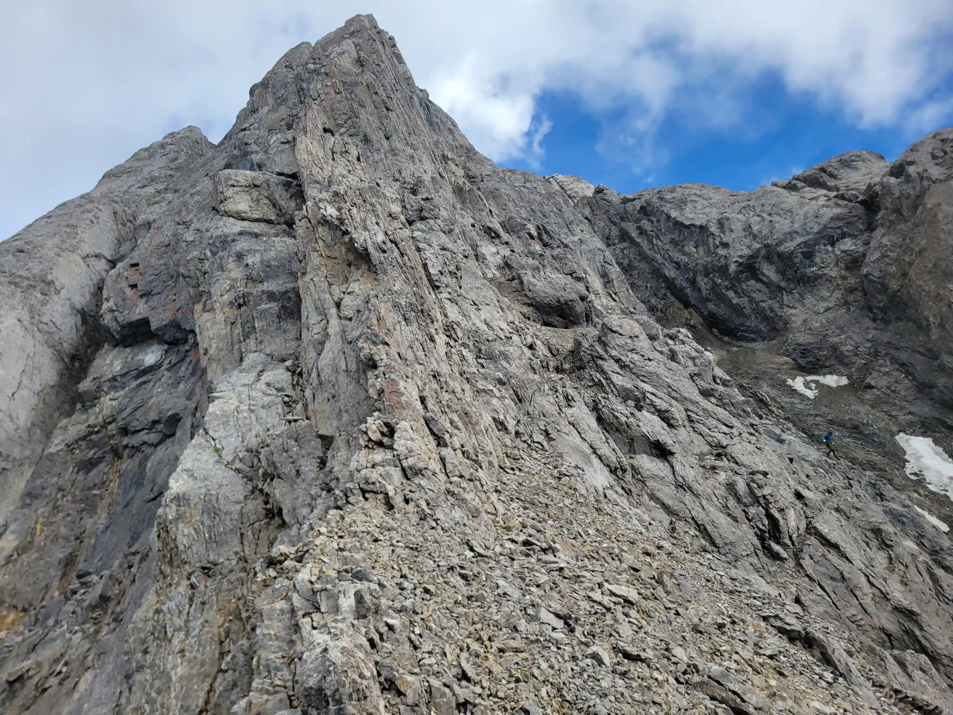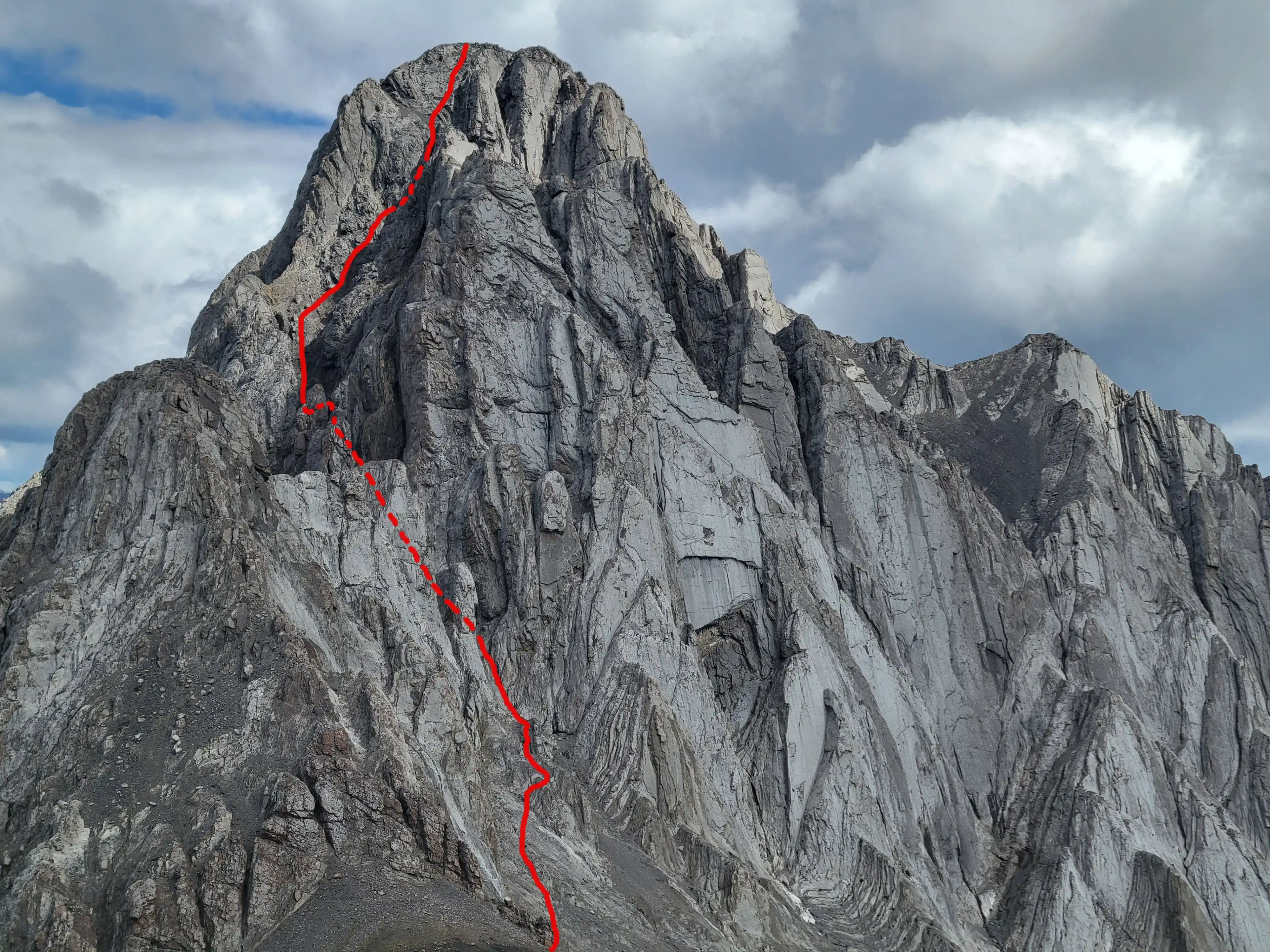 Just southwest of Banff lies Sundance Peak, a practically untouched high point along a 24km stretch of ridges and peaks making up the Sundance massif that has been attempted by few and summitted by even less. Given its visibility from Banff it's a bit surprising that Sundance doesn't see more visits but given the lack of route information, the technical nature of the ascent, and a decent amount of distance to cover to reach it despite being alongside Banff it's easy to see why this mountain would go largely unnoticed. The slabby nature of Sundance's SW face is very much reminiscent of the more technical peaks in the Opal Range in Kananaskis or the Sawback Range of Banff National Park and with its striking appearance it makes for quite the prize for those that reach the summit!