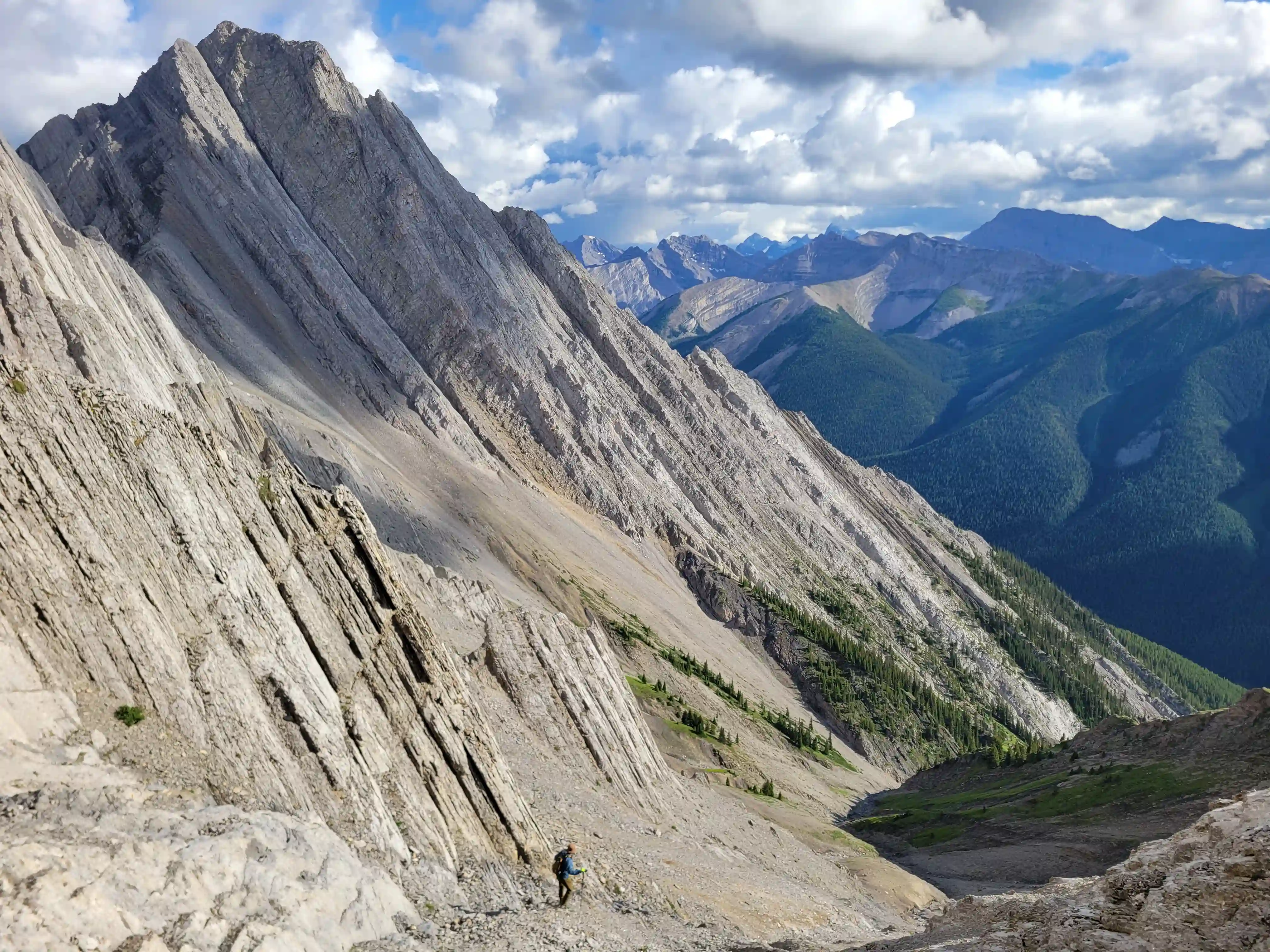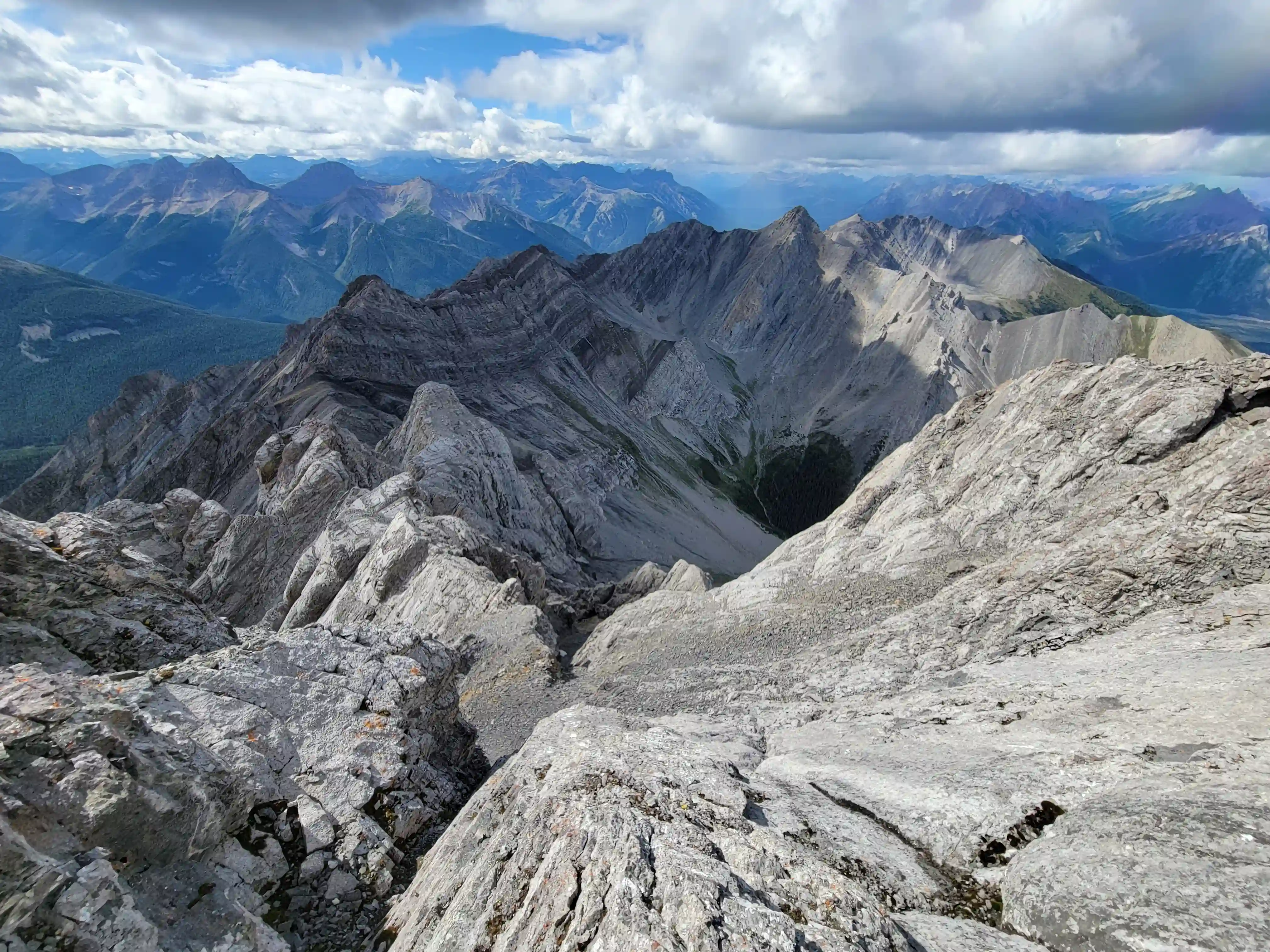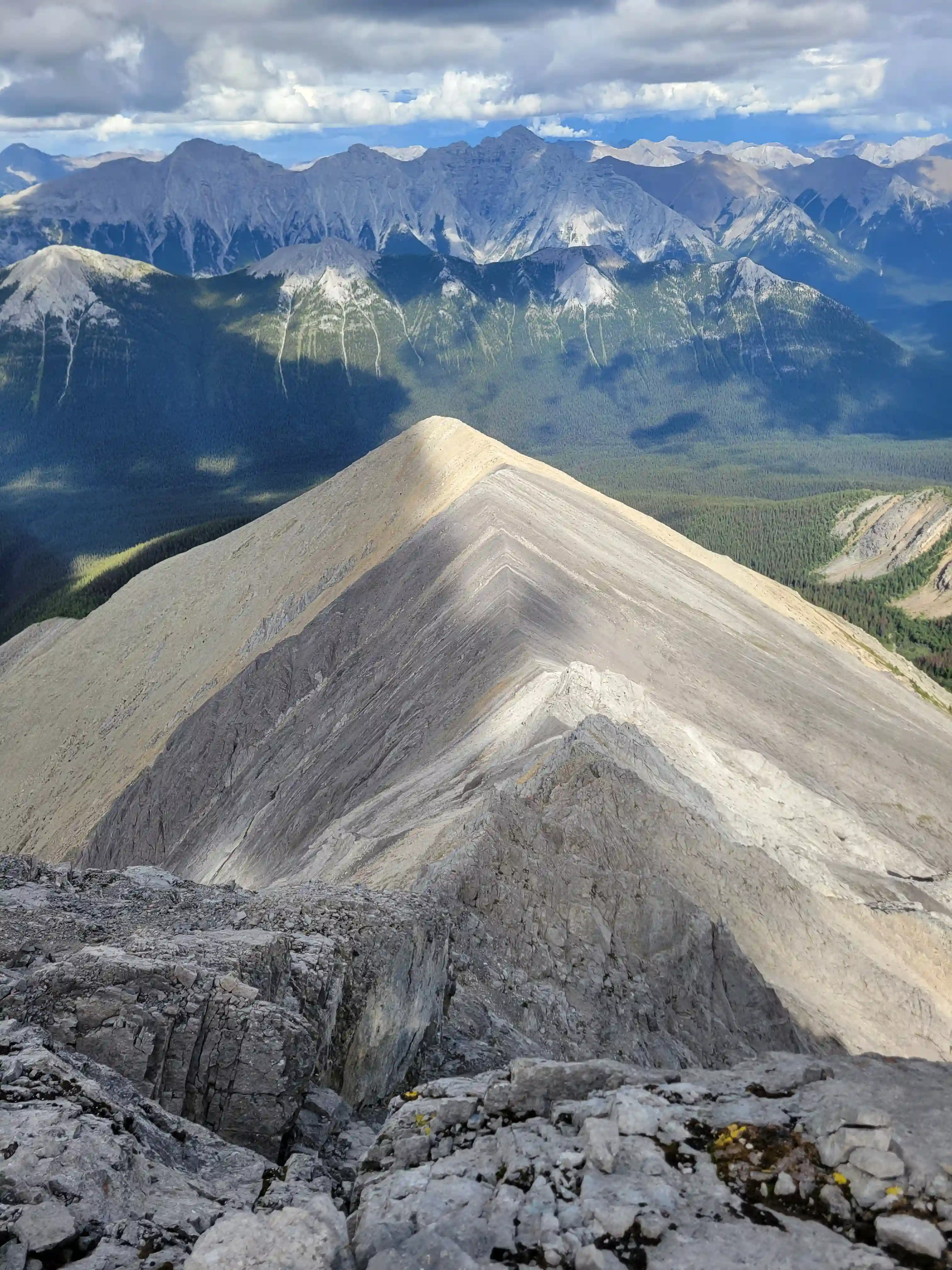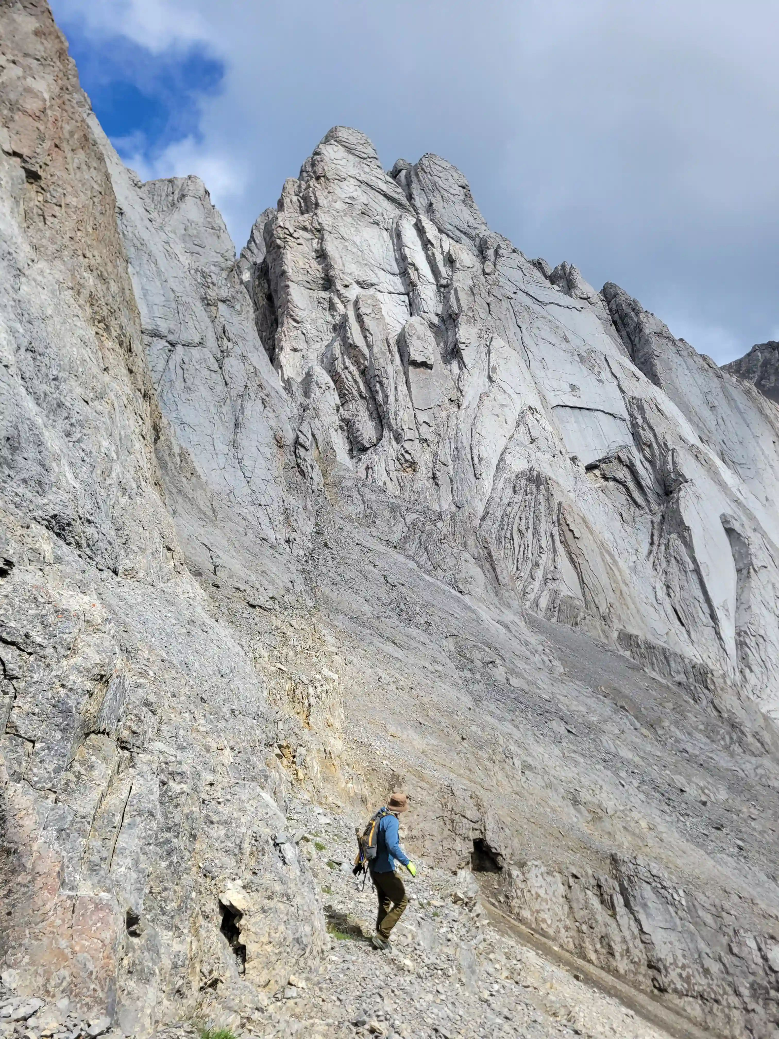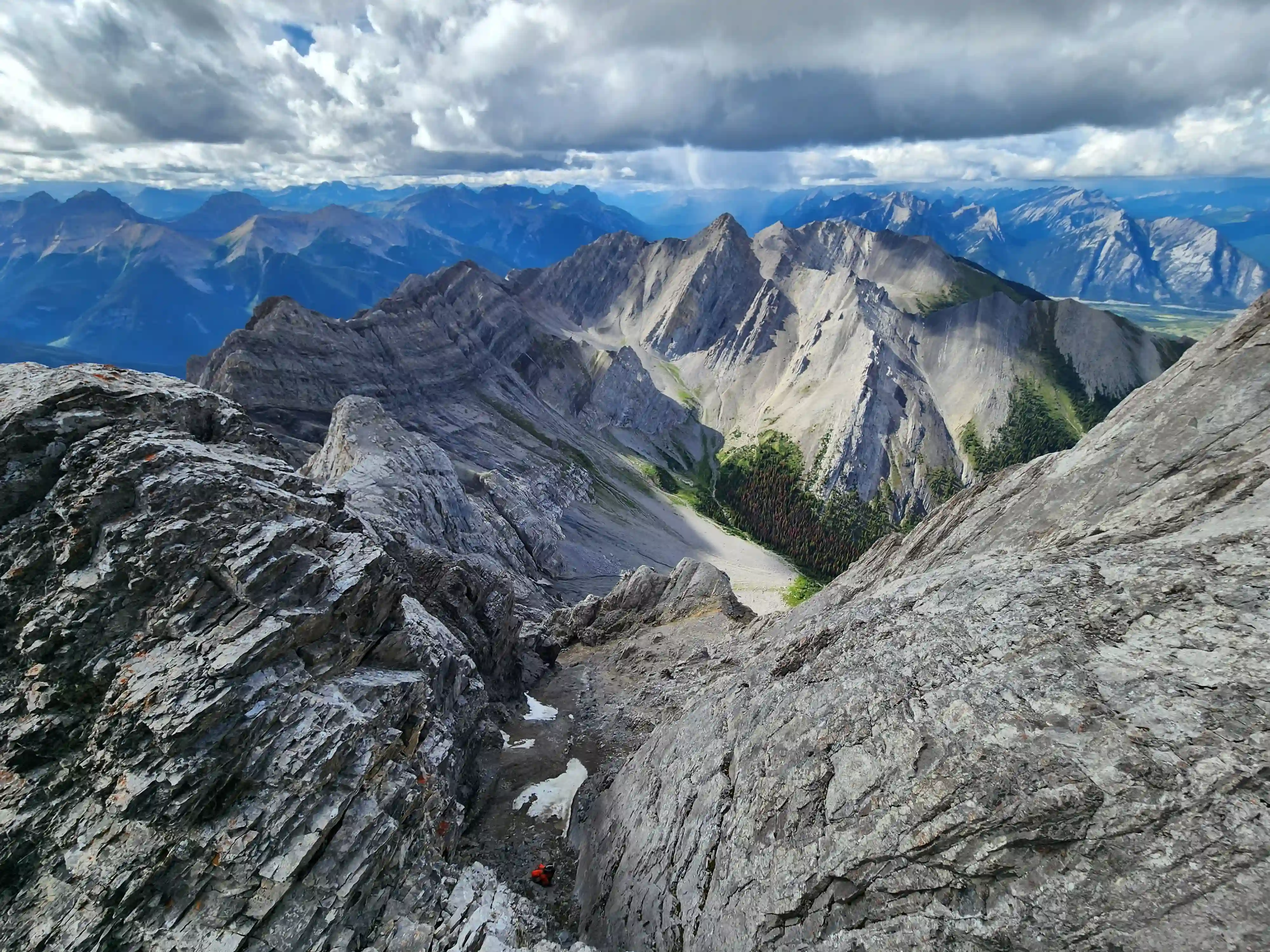 Just southwest of Banff lies Sundance Peak, a practically untouched high point along a 24km stretch of ridges and peaks making up the Sundance massif that has been attempted by few and summitted by even less. Given its visibility from Banff it's a bit surprising that Sundance doesn't see more visits but given the lack of route information, the technical nature of the ascent, and a decent amount of distance to cover to reach it despite being alongside Banff it's easy to see why this mountain would go largely unnoticed. The slabby nature of Sundance's SW face is very much reminiscent of the more technical peaks in the Opal Range in Kananaskis or the Sawback Range of Banff National Park and with its striking appearance it makes for quite the prize for those that reach the summit!