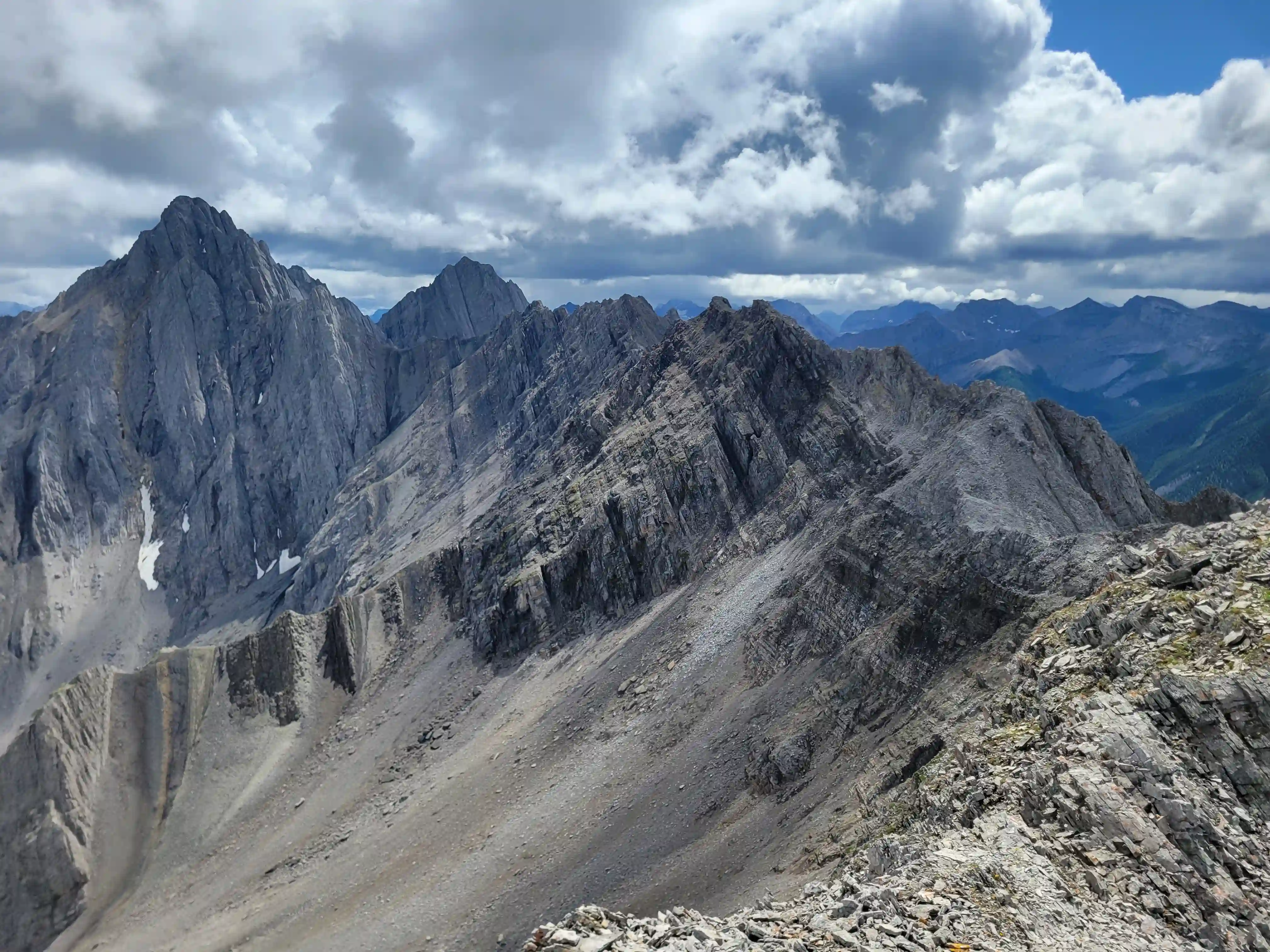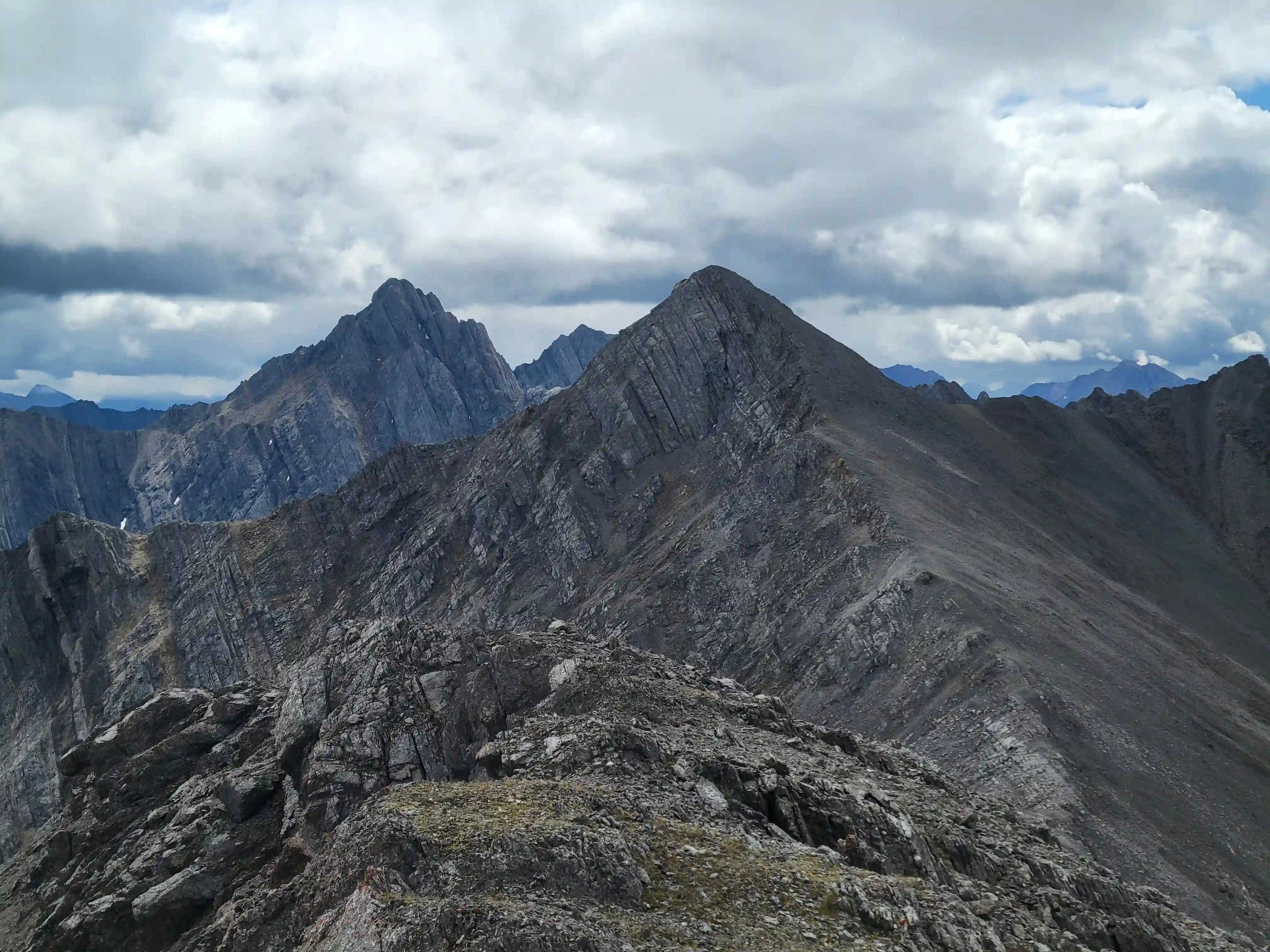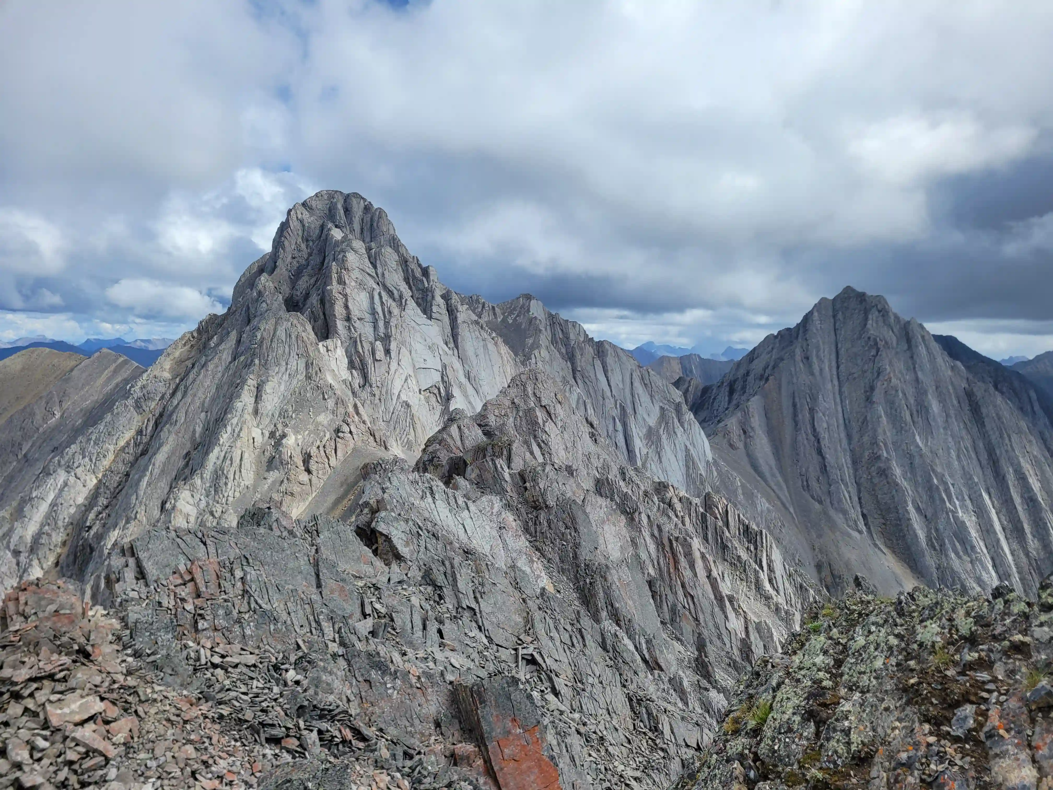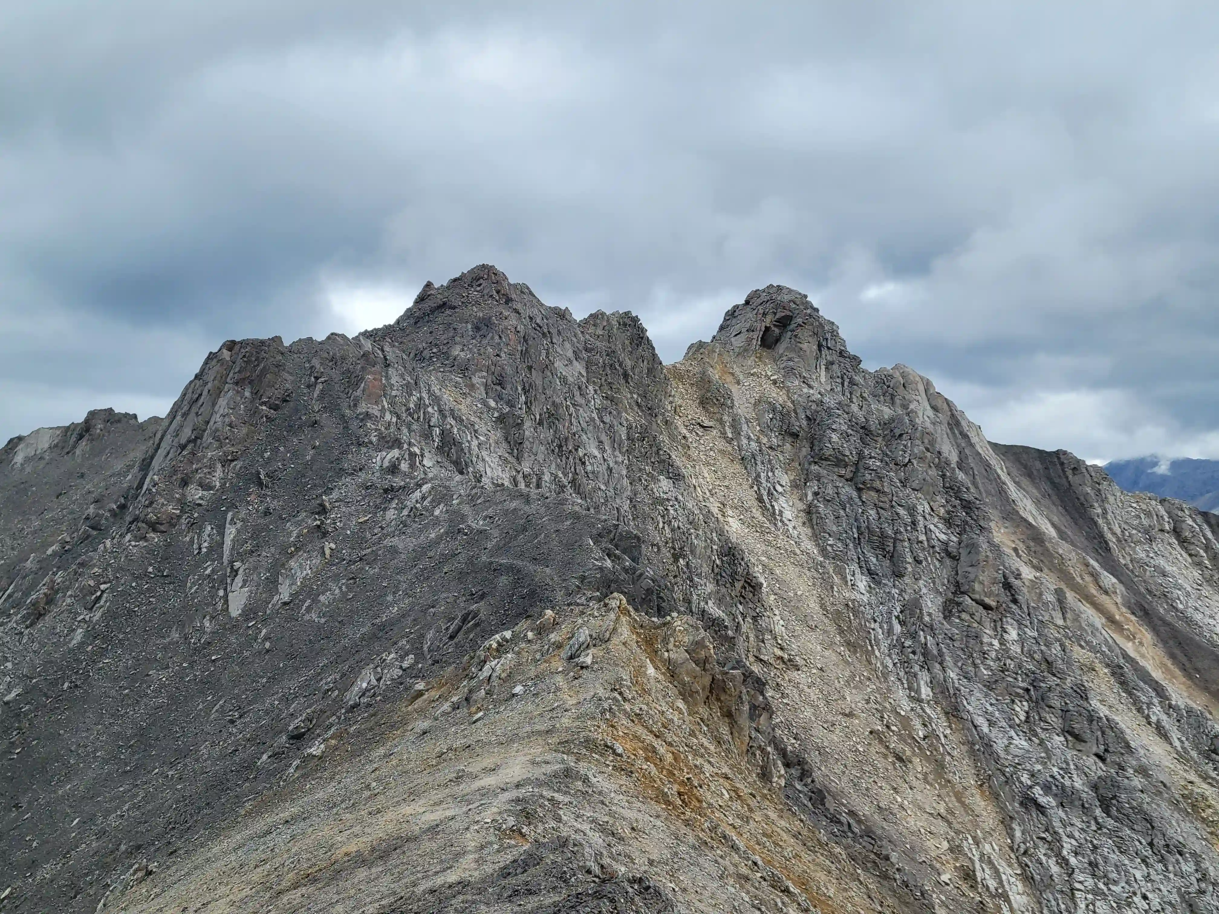 Our ascent line followed an obvious drainage until we reached a section with nasty deadfall and from there we deviated to slopes on the right of it until we found a line that looked like it would take us all the way to the ridge. Not long after we were on the ridge and could see the upcoming ridge and pekas that would be the next section of our day. The ridge started off relatively tame with a few bypasses making things a lot easier but once we got past our first high point of the day things got more technical. Following the first peak we had one 5th class downclimb before more technical ridge followed which wasn't too difficult with some detouring from side to side. Once we had gotten properly close to Sundance Peak however things got a bit more complicated with a downclimb and a gully feature leading us around a difficulty that closed the final distance between us and our main objective for the day!