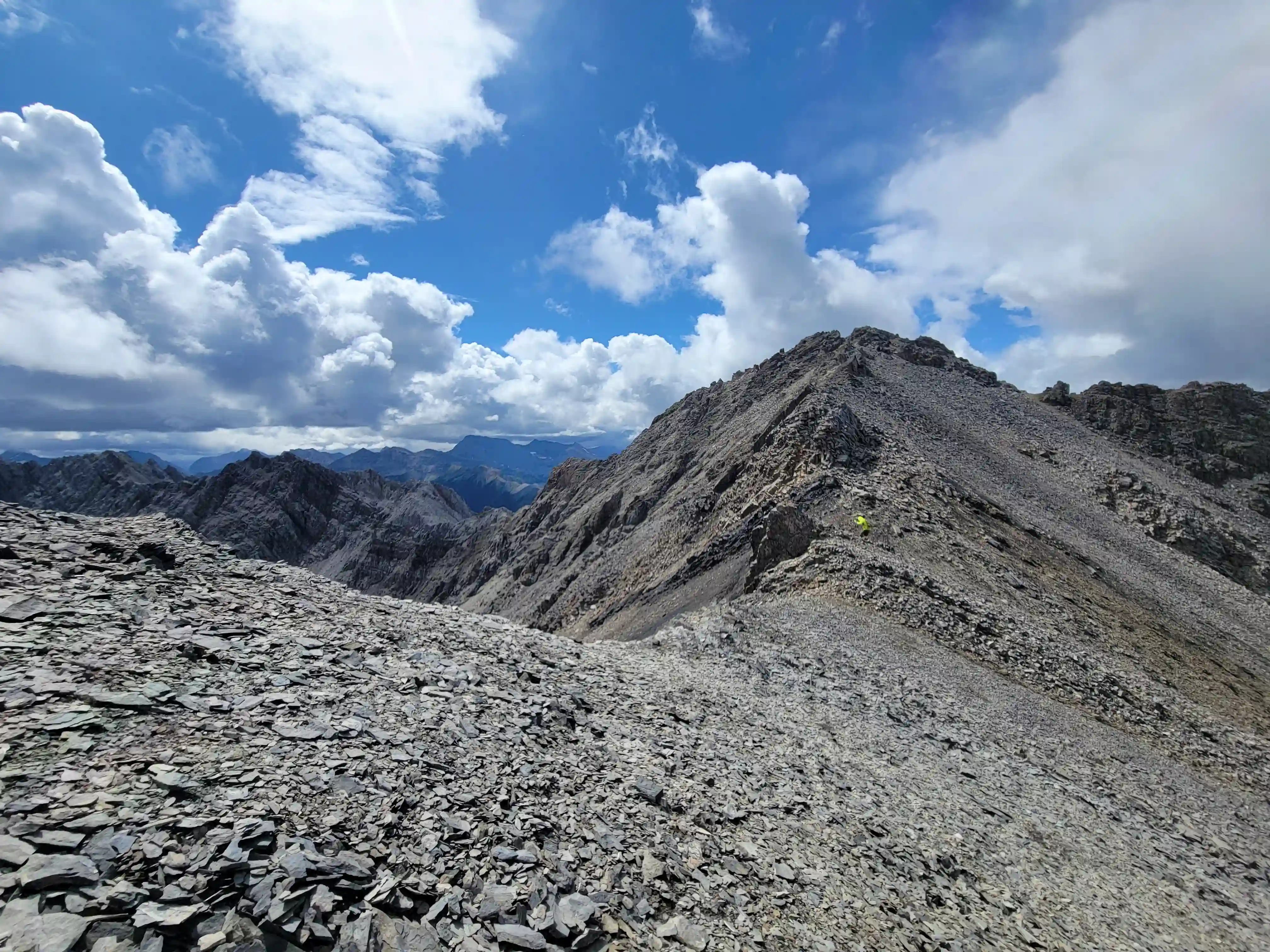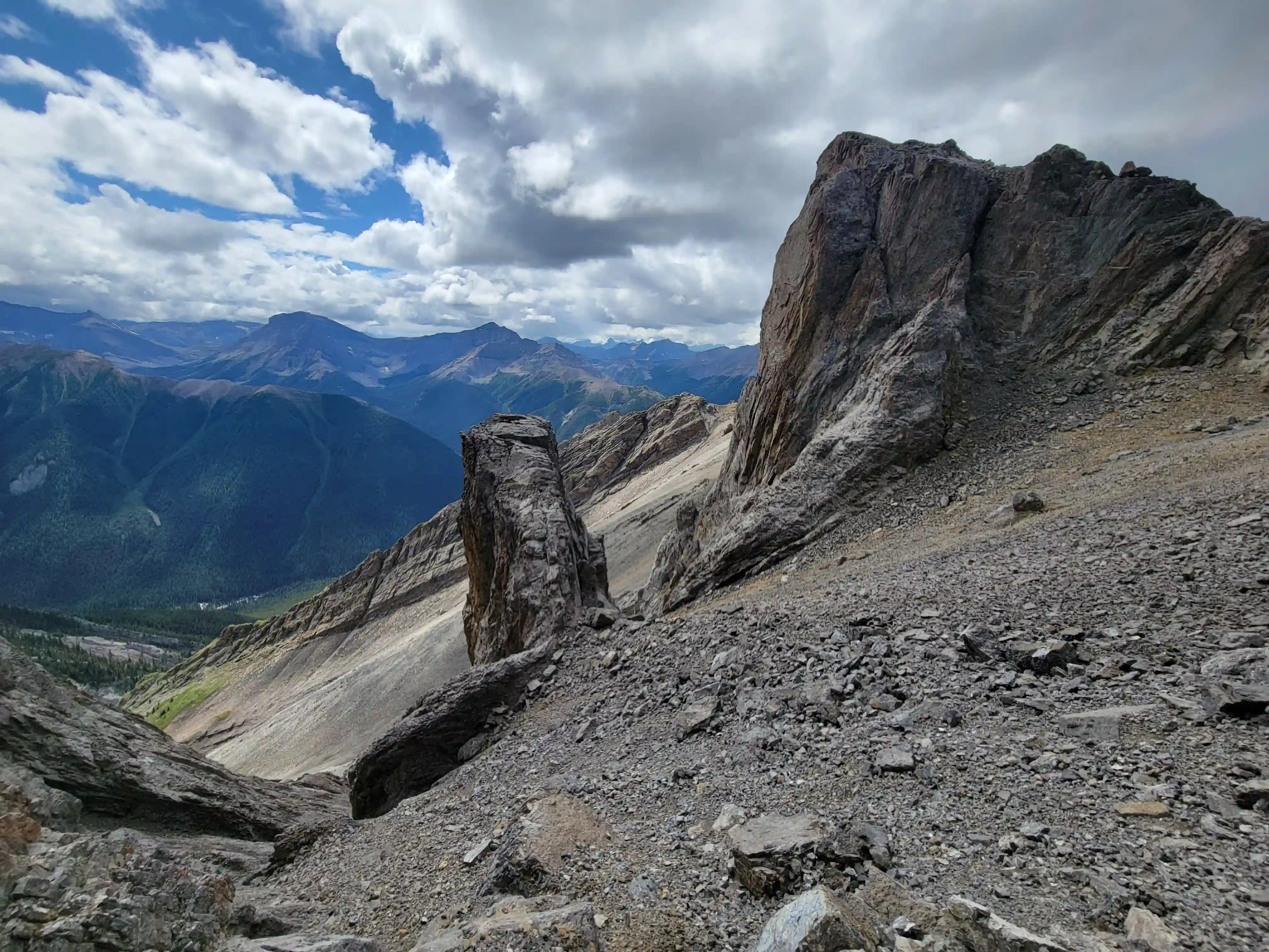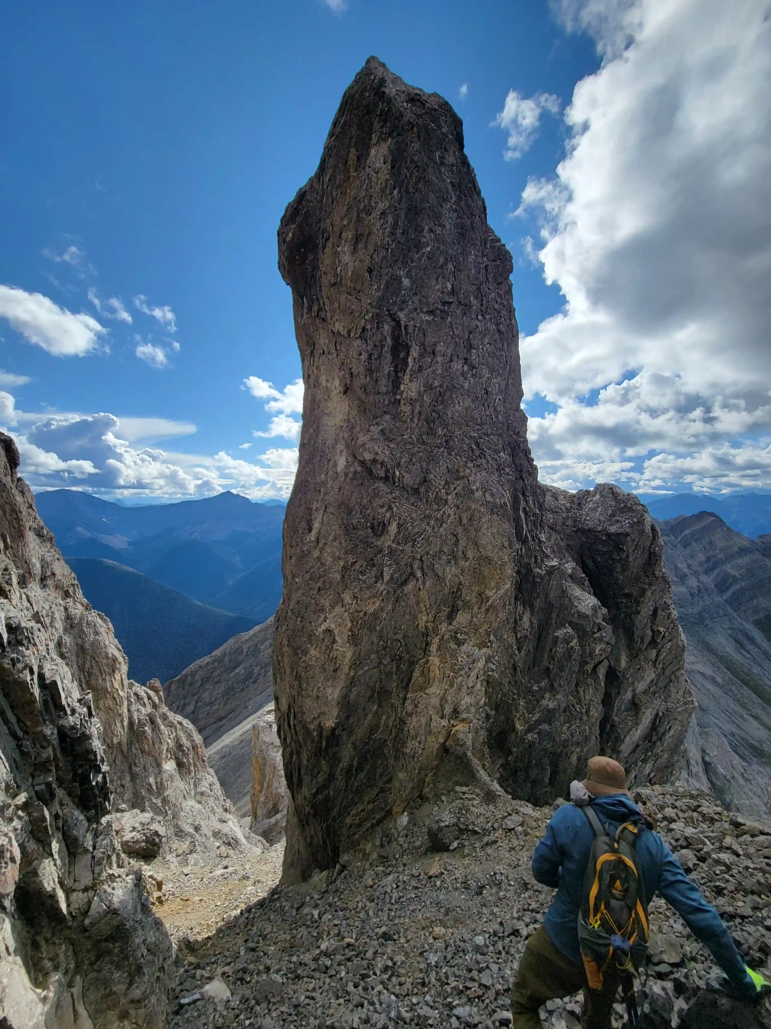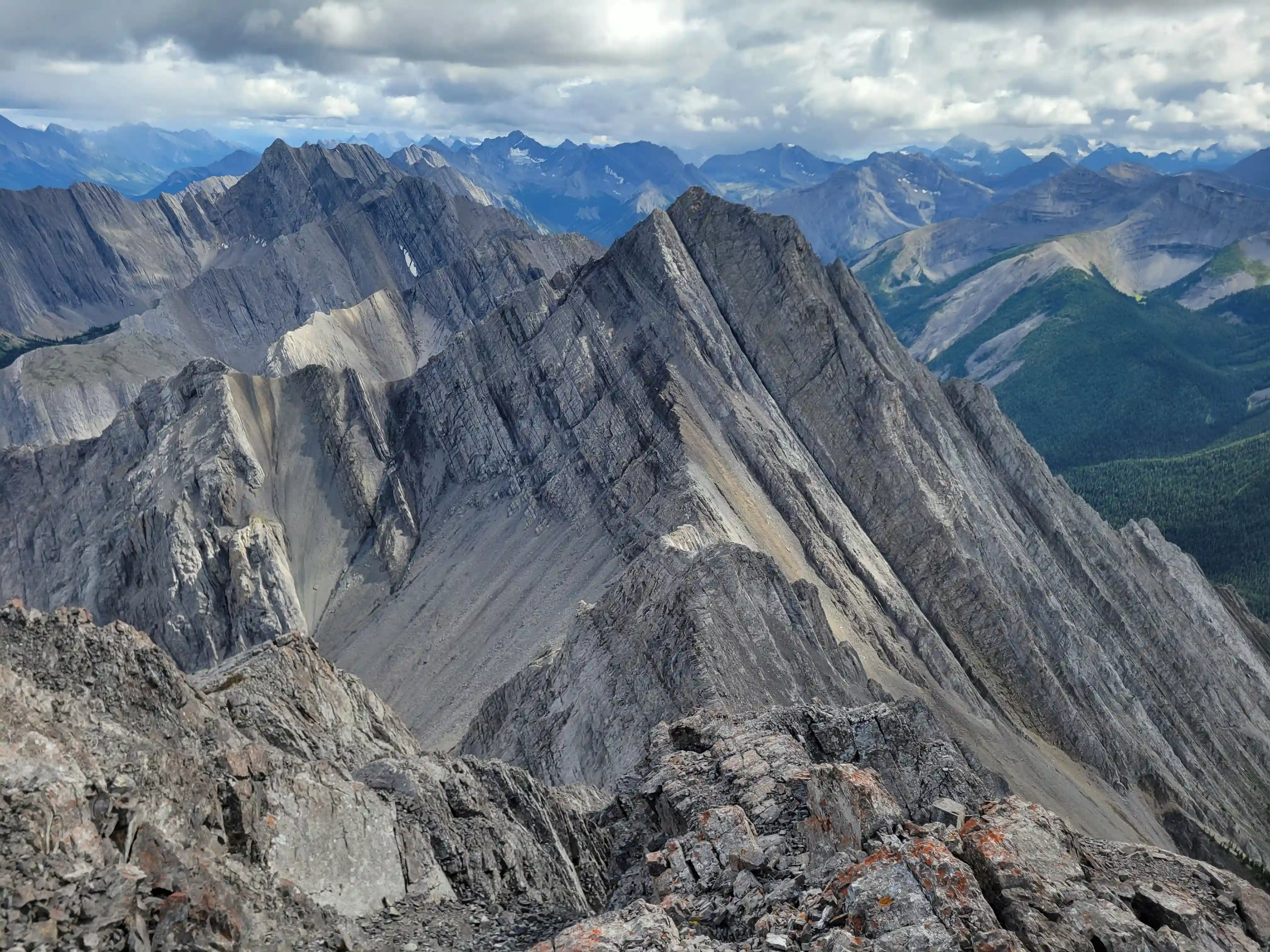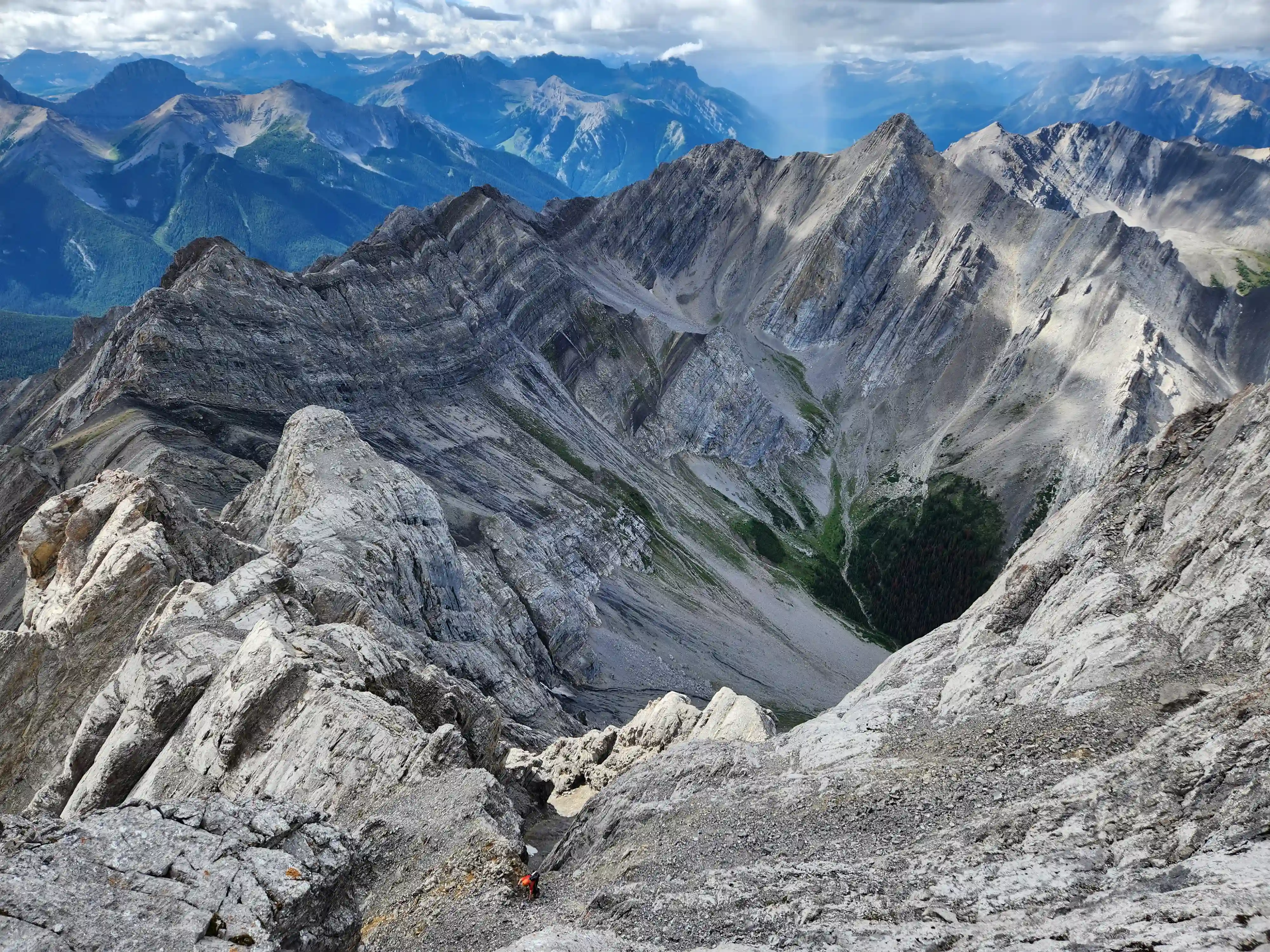Our ascent line followed an obvious drainage until we reached a section with nasty deadfall and from there we deviated to slopes on the right of it until we found a line that looked like it would take us all the way to the ridge. Not long after we were on the ridge and could see the upcoming ridge and pekas that would be the next section of our day. The ridge started off relatively tame with a few bypasses making things a lot easier but once we got past our first high point of the day things got more technical. Following the first peak we had one 5th class downclimb before more technical ridge followed which wasn't too difficult with some detouring from side to side. Once we had gotten properly close to Sundance Peak however things got a bit more complicated with a downclimb and a gully feature leading us around a difficulty that closed the final distance between us and our main objective for the day!